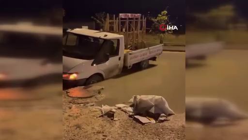 Ankara'nın Polatlı ilçesinde kazı çalışması sonrası yağıştan yolun çökmesiyle bir kamyonet mahsur kaldı.