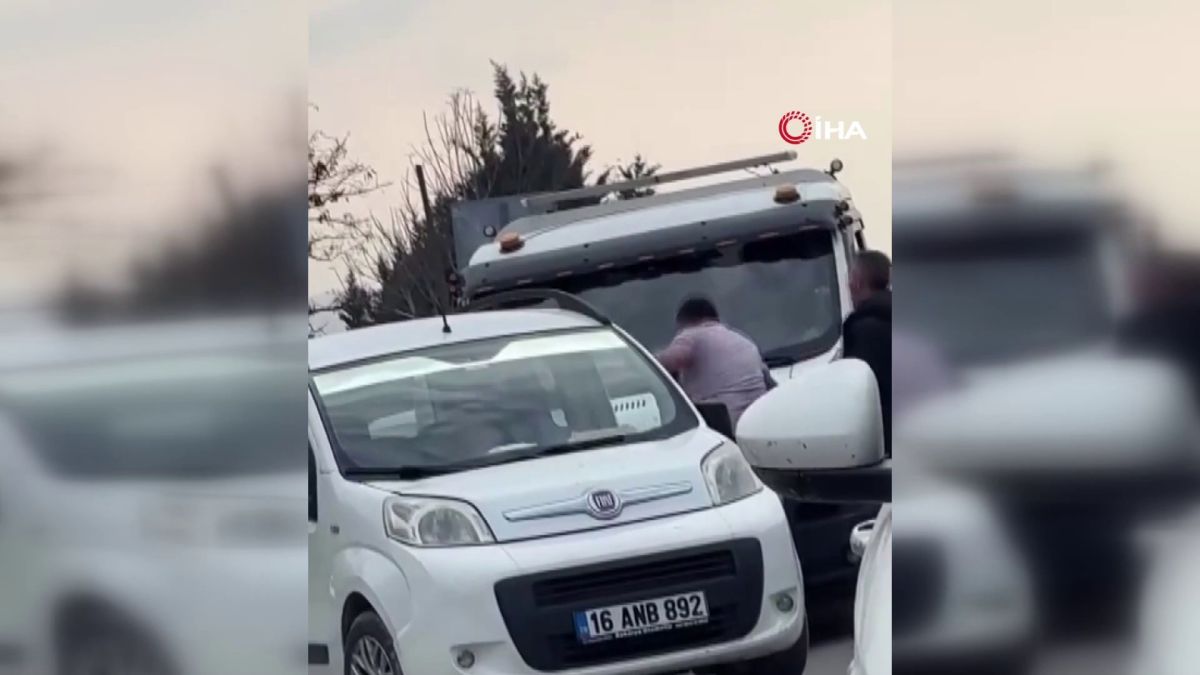 Olay, Nilüfer ilçesinde bulunan Küçük Sanayi Bölgesi’nde meydana geldi. Aracından inen sürücü, kamyonete yönelerek saldırmaya başladı. Trafikte kısa süreli paniğe neden olan olayda, çevredeki sürücüler neye uğradığını şaşırdı.